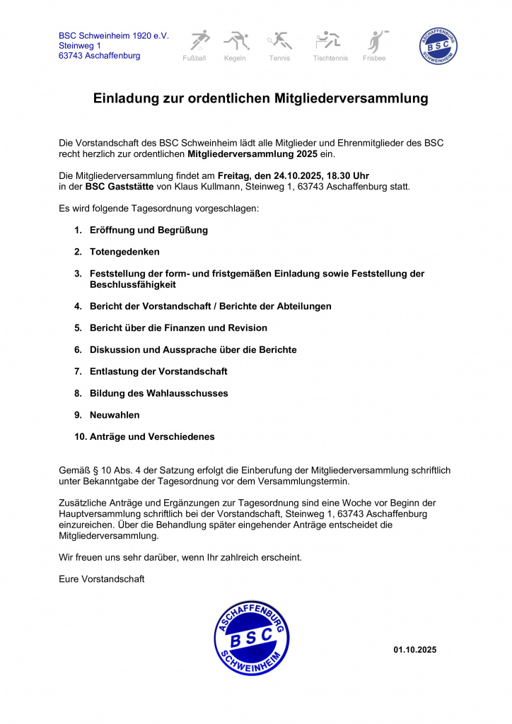 Willkommen auf der Homepage des BSC Schweinheim!