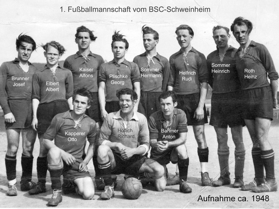 Historie Ein besonderer Dank geht an dieser Stelle an den Heimat- und Geschichtsverein Aschaffenburg-Schweinheim e.V., dessen Archiv uns als Quelle für diese Galerie gedient hat. BSC 1.Mannschaft um 1948 ◄ Zurueck Vor ► Bild 8 von 21