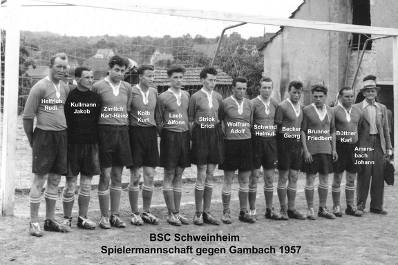 Historie Ein besonderer Dank geht an dieser Stelle an den Heimat- und Geschichtsverein Aschaffenburg-Schweinheim e.V., dessen Archiv uns als Quelle für diese Galerie gedient hat. BSC bei einem Spiel in Gambach 1957 ◄ Zurueck Vor ► Bild 11 von 21
